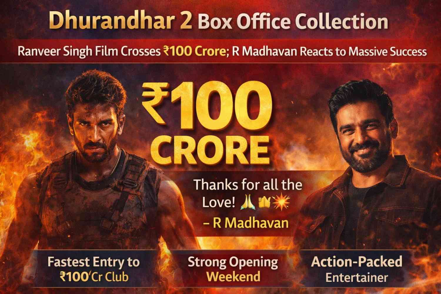 The latest Bollywood action spectacle Dhurandhar 2, starring Ranveer Singh in the lead role, has delivered a powerful box office performance by crossing the ₹100