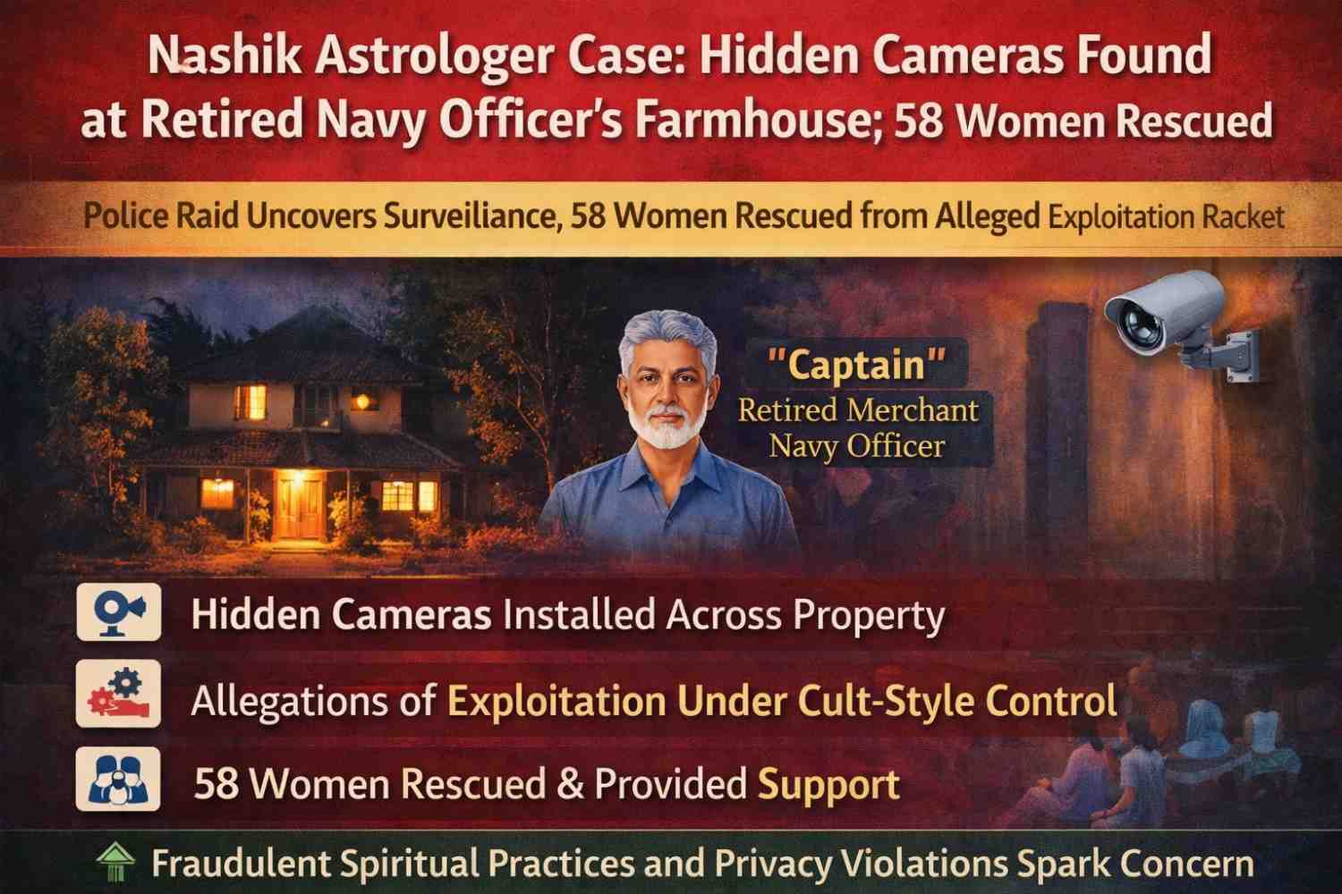 A major criminal investigation has been launched in Nashik after police raided a secluded farmhouse owned by a retired Merchant Navy officer popularly known as