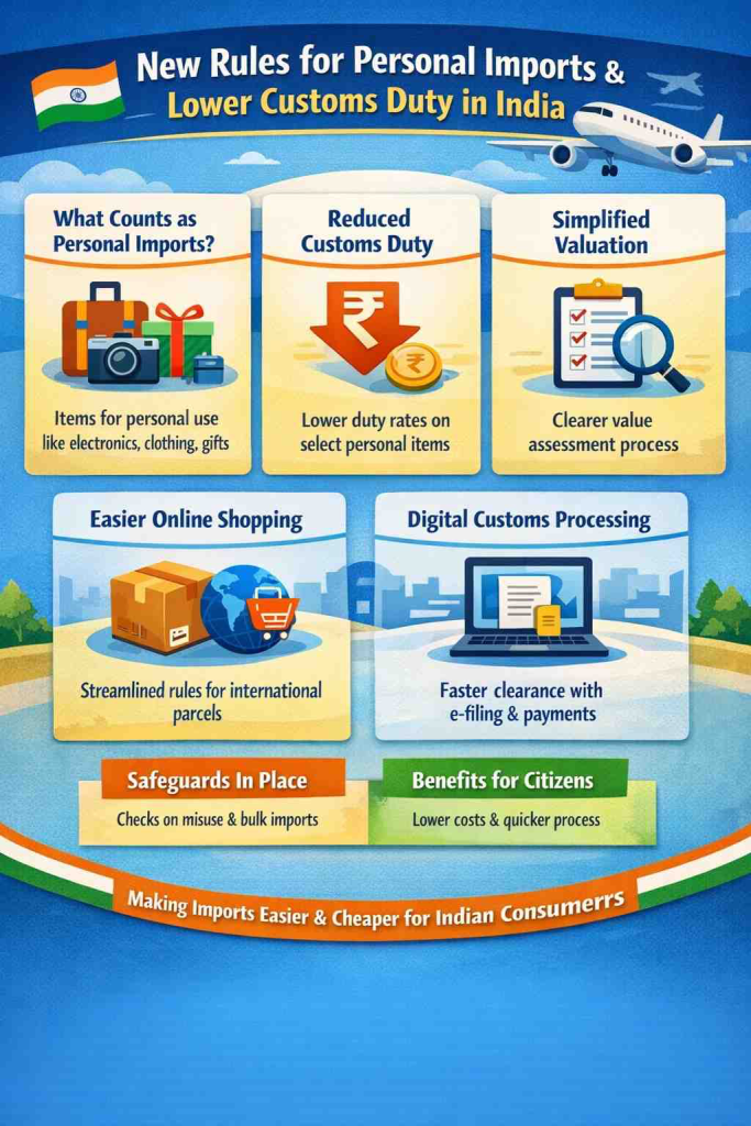 In a move that directly affects millions of Indian citizens, the government has introduced updated rules governing personal imports along with revisions in customs duty structures. These changes are designed to simplify procedures, reduce unnecessary costs, and bring greater transparency to how goods brought from abroad for personal use are assessed and cleared at Indian ports and airports. For frequent international travellers, online shoppers using global platforms, and families receiving items from overseas relatives, the update marks a significant change in day-to-day import experiences.